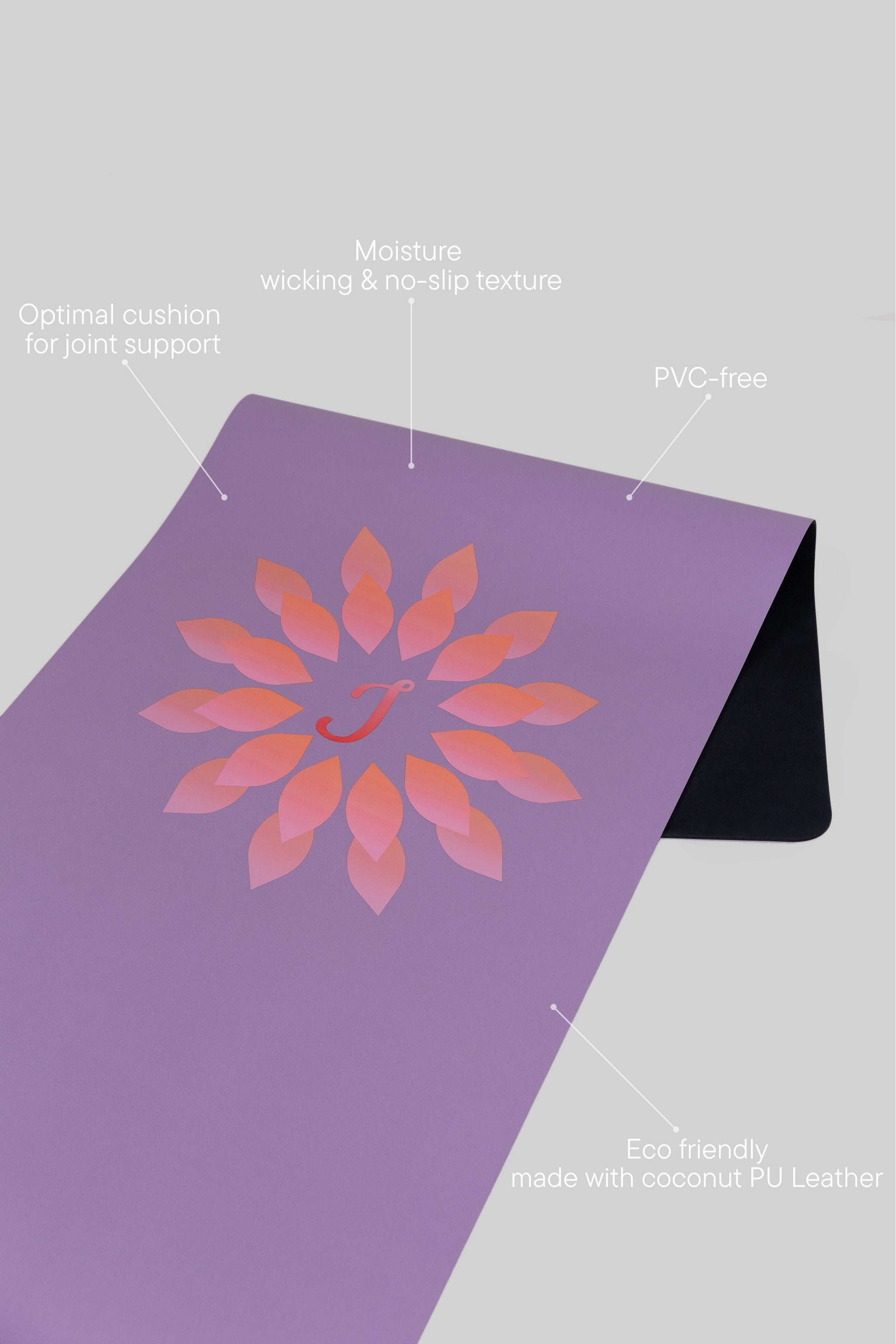 EcoEssenza yoga mat, designed with sustainability in mind. Made from high-quality, coconut Pu leather and natural rubber, it is non-toxic and free from harmful chemicals and PVC. The anti-slip surface ensures excellent grip, while the odor-free design enhances your practice. With moisture-wicking properties for comfort and perfect cushioning for joint protection, the EcoEssenza mat combines performance with eco-consciousness for an elevated yoga experience.